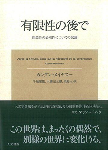 前に買っておいた本をメモ。まずは、カンタン・メイヤスー『有限性の後で-偶然性の必然性についての試論』。 有限性の後で: 偶然性の必然性についての試論 作者: カンタンメイヤスー,Quentin Meillassoux,千葉雅也,大橋完太郎,星野太 出版社/メーカー: 人文…